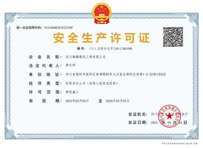 四川騰耀建筑工程有限公司  地址:四川省德陽市旌陽區南湖路66號九為藍谷德陽總部港1-A-22棟1層  電話:0838-2507855